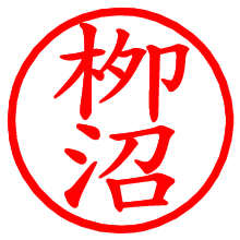[朱肉の色]を選び、入力窓に“栁沼”と入力して[生成]ボタンを押すと、印影が更新され、リンクから電子印鑑(デジタル印影)がダウンロードできます。 電子印鑑「栁沼」の作り方文字表示が変なときや、文字バランスが悪いときは[字形切替]のチェックボックスでON/OFFを切り替え[生成]しなおしてください。 生成される画像は通常の印影「栁沼.png」と、にじみを表現した少し太めの印影「栁沼B.png」の背面透過PNG形式2種と、鮮明なPDF形式の印影「栁沼.pdf」の計3種類です。 朱肉の微妙な色の違いを7色で表現しました。デフォルト(左端)は、JISが定めた朱肉の色のマンセル値(7.5R 5/14)をRGB値(217,66,54)に変換したものになっています。 「電子透かし」にチェックを入れて[生成]ボタンを押すと、タイムスタンプを電子透かしとして埋め込んだセキュアな電子印鑑が作れます。詳細は別ページの「タイムスタンプと電子透かし」でご覧ください。 栁沼さんの日付印が作れます。「日付スタンプメーカー」は、社内向けの書類に利用されることの多い日付印(データ印)が無料で作れるWebアプリケーションです。中段に日付が入り、上段と下段は、ともに8文字まで文字が入ります。 ![]() 古代文字で落款印が作れます。「落款スタンプメーカー」で作品を引き立たせる落款印が作れます。