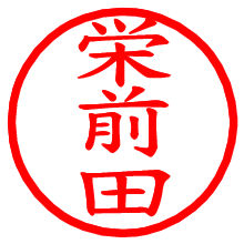 [朱肉の色]を選び、入力窓に“栄前田”と入力して[生成]ボタンを押すと、印影が更新され、リンクから電子印鑑(デジタル印影)がダウンロードできます。 電子印鑑「栄前田」の作り方文字表示が変なときや、文字バランスが悪いときは[字形切替]のチェックボックスでON/OFFを切り替え[生成]しなおしてください。 生成される画像は通常の印影「栄前田.png」と、にじみを表現した少し太めの印影「栄前田B.png」の背面透過PNG形式2種と、鮮明なPDF形式の印影「栄前田.pdf」の計3種類です。 朱肉の微妙な色の違いを7色で表現しました。デフォルト(左端)は、JISが定めた朱肉の色のマンセル値(7.5R 5/14)をRGB値(217,66,54)に変換したものになっています。 「電子透かし」にチェックを入れて[生成]ボタンを押すと、タイムスタンプを電子透かしとして埋め込んだセキュアな電子印鑑が作れます。詳細は別ページの「タイムスタンプと電子透かし」でご覧ください。 栄前田さんの日付印が作れます。「日付スタンプメーカー」は、社内向けの書類に利用されることの多い日付印(データ印)が無料で作れるWebアプリケーションです。中段に日付が入り、上段と下段は、ともに8文字まで文字が入ります。 ![]() 古代文字で落款印が作れます。「落款スタンプメーカー」で作品を引き立たせる落款印が作れます。