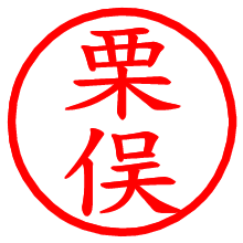 [朱肉の色]を選び、入力窓に“栗俣”と入力して[生成]ボタンを押すと、印影が更新され、リンクから電子印鑑(デジタル印影)がダウンロードできます。 電子印鑑「栗俣」の作り方文字表示が変なときや、文字バランスが悪いときは[字形切替]のチェックボックスでON/OFFを切り替え[生成]しなおしてください。 生成される画像は通常の印影「栗俣.png」と、にじみを表現した少し太めの印影「栗俣B.png」の背面透過PNG形式2種と、鮮明なPDF形式の印影「栗俣.pdf」の計3種類です。 朱肉の微妙な色の違いを7色で表現しました。デフォルト(左端)は、JISが定めた朱肉の色のマンセル値(7.5R 5/14)をRGB値(217,66,54)に変換したものになっています。 「電子透かし」にチェックを入れて[生成]ボタンを押すと、タイムスタンプを電子透かしとして埋め込んだセキュアな電子印鑑が作れます。詳細は別ページの「タイムスタンプと電子透かし」でご覧ください。 栗俣さんの日付印が作れます。「日付スタンプメーカー」は、社内向けの書類に利用されることの多い日付印(データ印)が無料で作れるWebアプリケーションです。中段に日付が入り、上段と下段は、ともに8文字まで文字が入ります。 ![]() 古代文字で落款印が作れます。「落款スタンプメーカー」で作品を引き立たせる落款印が作れます。