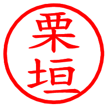 [朱肉の色]を選び、入力窓に“栗垣”と入力して[生成]ボタンを押すと、印影が更新され、リンクから電子印鑑(デジタル印影)がダウンロードできます。 電子印鑑「栗垣」の作り方文字表示が変なときや、文字バランスが悪いときは[字形切替]のチェックボックスでON/OFFを切り替え[生成]しなおしてください。 生成される画像は通常の印影「栗垣.png」と、にじみを表現した少し太めの印影「栗垣B.png」の背面透過PNG形式2種と、鮮明なPDF形式の印影「栗垣.pdf」の計3種類です。 朱肉の微妙な色の違いを7色で表現しました。デフォルト(左端)は、JISが定めた朱肉の色のマンセル値(7.5R 5/14)をRGB値(217,66,54)に変換したものになっています。 「電子透かし」にチェックを入れて[生成]ボタンを押すと、タイムスタンプを透かしとして埋め込んだセキュアな電子印鑑が作れます。詳細は別ページの「電子透かしとタイムスタンプ」でご覧ください。 栗垣さんの日付印が作れます。「日付スタンプメーカー」は、社内向けの書類に利用されることの多い日付印(データ印)が無料で作れるWebアプリケーションです。中段に日付が入り、上段と下段は、ともに8文字まで文字が入ります。 ![]() 古代文字で落款印が作れます。「落款スタンプメーカー」で作品を引き立たせる落款印が作れます。