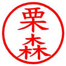 [朱肉の色]を選び、入力窓に“栗森”と入力して[生成]ボタンを押すと、印影が更新され、リンクから電子印鑑(デジタル印影)がダウンロードできます。 電子印鑑「栗森」の作り方文字表示が変なときや、文字バランスが悪いときは[字形切替]のチェックボックスでON/OFFを切り替え[生成]しなおしてください。 生成される画像は通常の印影「栗森.png」と、にじみを表現した少し太めの印影「栗森B.png」の背面透過PNG形式2種と、鮮明なPDF形式の印影「栗森.pdf」の計3種類です。 朱肉の微妙な色の違いを7色で表現しました。デフォルト(左端)は、JISが定めた朱肉の色のマンセル値(7.5R 5/14)をRGB値(217,66,54)に変換したものになっています。 「電子透かし」にチェックを入れて[生成]ボタンを押すと、タイムスタンプを透かしとして埋め込んだセキュアな電子印鑑が作れます。詳細は別ページの「電子透かしとタイムスタンプ」でご覧ください。 栗森さんの日付印が作れます。「日付スタンプメーカー」は、社内向けの書類に利用されることの多い日付印(データ印)が無料で作れるWebアプリケーションです。中段に日付が入り、上段と下段は、ともに8文字まで文字が入ります。 ![]() 古代文字で落款印が作れます。「落款スタンプメーカー」で作品を引き立たせる落款印が作れます。