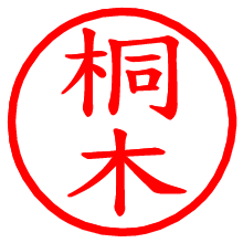 [朱肉の色]を選び、入力窓に“桐木”と入力して[生成]ボタンを押すと、印影が更新され、リンクから電子印鑑(デジタル印影)がダウンロードできます。 電子印鑑「桐木」の作り方文字表示が変なときや、文字バランスが悪いときは[字形切替]のチェックボックスでON/OFFを切り替え[生成]しなおしてください。 生成される画像は通常の印影「桐木.png」と、にじみを表現した少し太めの印影「桐木B.png」の背面透過PNG形式2種と、鮮明なPDF形式の印影「桐木.pdf」の計3種類です。 朱肉の微妙な色の違いを7色で表現しました。デフォルト(左端)は、JISが定めた朱肉の色のマンセル値(7.5R 5/14)をRGB値(217,66,54)に変換したものになっています。 「電子透かし」にチェックを入れて[生成]ボタンを押すと、タイムスタンプを電子透かしとして埋め込んだセキュアな電子印鑑が作れます。詳細は別ページの「タイムスタンプと電子透かし」でご覧ください。 桐木さんの日付印が作れます。「日付スタンプメーカー」は、社内向けの書類に利用されることの多い日付印(データ印)が無料で作れるWebアプリケーションです。中段に日付が入り、上段と下段は、ともに8文字まで文字が入ります。 ![]() 古代文字で落款印が作れます。「落款スタンプメーカー」で作品を引き立たせる落款印が作れます。