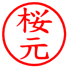[朱肉の色]を選び、入力窓に“桜元”と入力して[生成]ボタンを押すと、印影が更新され、リンクから電子印鑑(デジタル印影)がダウンロードできます。 電子印鑑「桜元」の作り方文字表示が変なときや、文字バランスが悪いときは[字形切替]のチェックボックスでON/OFFを切り替え[生成]しなおしてください。 生成される画像は通常の印影「桜元.png」と、にじみを表現した少し太めの印影「桜元B.png」の背面透過PNG形式2種と、鮮明なPDF形式の印影「桜元.pdf」の計3種類です。 朱肉の微妙な色の違いを7色で表現しました。デフォルト(左端)は、JISが定めた朱肉の色のマンセル値(7.5R 5/14)をRGB値(217,66,54)に変換したものになっています。 「電子透かし」にチェックを入れて[生成]ボタンを押すと、タイムスタンプを電子透かしとして埋め込んだセキュアな電子印鑑が作れます。詳細は別ページの「タイムスタンプと電子透かし」でご覧ください。 桜元さんの日付印が作れます。「日付スタンプメーカー」は、社内向けの書類に利用されることの多い日付印(データ印)が無料で作れるWebアプリケーションです。中段に日付が入り、上段と下段は、ともに8文字まで文字が入ります。 ![]() 古代文字で落款印が作れます。「落款スタンプメーカー」で作品を引き立たせる落款印が作れます。