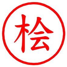 [朱肉の色]を選び、入力窓に“桧”と入力して[生成]ボタンを押すと、印影が更新され、リンクから電子印鑑(デジタル印影)がダウンロードできます。 電子印鑑「桧」の作り方文字表示が変なときや、文字バランスが悪いときは[字形切替]のチェックボックスでON/OFFを切り替え[生成]しなおしてください。 生成される画像は通常の印影「桧.png」と、にじみを表現した少し太めの印影「桧B.png」の背面透過PNG形式2種と、鮮明なPDF形式の印影「桧.pdf」の計3種類です。 朱肉の微妙な色の違いを7色で表現しました。デフォルト(左端)は、JISが定めた朱肉の色のマンセル値(7.5R 5/14)をRGB値(217,66,54)に変換したものになっています。 「電子透かし」にチェックを入れて[生成]ボタンを押すと、タイムスタンプを電子透かしとして埋め込んだセキュアな電子印鑑が作れます。詳細は別ページの「タイムスタンプと電子透かし」でご覧ください。 桧さんの日付印が作れます。「日付スタンプメーカー」は、社内向けの書類に利用されることの多い日付印(データ印)が無料で作れるWebアプリケーションです。中段に日付が入り、上段と下段は、ともに8文字まで文字が入ります。 ![]() 古代文字で落款印が作れます。「落款スタンプメーカー」で作品を引き立たせる落款印が作れます。