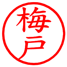[朱肉の色]を選び、入力窓に“梅戸”と入力して[生成]ボタンを押すと、印影が更新され、リンクから電子印鑑(デジタル印影)がダウンロードできます。 電子印鑑「梅戸」の作り方文字表示が変なときや、文字バランスが悪いときは[字形切替]のチェックボックスでON/OFFを切り替え[生成]しなおしてください。 生成される画像は通常の印影「梅戸.png」と、にじみを表現した少し太めの印影「梅戸B.png」の背面透過PNG形式2種と、鮮明なPDF形式の印影「梅戸.pdf」の計3種類です。 朱肉の微妙な色の違いを7色で表現しました。デフォルト(左端)は、JISが定めた朱肉の色のマンセル値(7.5R 5/14)をRGB値(217,66,54)に変換したものになっています。 「電子透かし」にチェックを入れて[生成]ボタンを押すと、タイムスタンプを電子透かしとして埋め込んだセキュアな電子印鑑が作れます。詳細は別ページの「タイムスタンプと電子透かし」でご覧ください。 梅戸さんの日付印が作れます。「日付スタンプメーカー」は、社内向けの書類に利用されることの多い日付印(データ印)が無料で作れるWebアプリケーションです。中段に日付が入り、上段と下段は、ともに8文字まで文字が入ります。 ![]() 古代文字で落款印が作れます。「落款スタンプメーカー」で作品を引き立たせる落款印が作れます。
