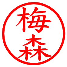 [朱肉の色]を選び、入力窓に“梅森”と入力して[生成]ボタンを押すと、印影が更新され、リンクから電子印鑑(デジタル印影)がダウンロードできます。 電子印鑑「梅森」の作り方文字表示が変なときや、文字バランスが悪いときは[字形切替]のチェックボックスでON/OFFを切り替え[生成]しなおしてください。 生成される画像は通常の印影「梅森.png」と、にじみを表現した少し太めの印影「梅森B.png」の背面透過PNG形式2種と、鮮明なPDF形式の印影「梅森.pdf」の計3種類です。 朱肉の微妙な色の違いを7色で表現しました。デフォルト(左端)は、JISが定めた朱肉の色のマンセル値(7.5R 5/14)をRGB値(217,66,54)に変換したものになっています。 「電子透かし」にチェックを入れて[生成]ボタンを押すと、タイムスタンプを電子透かしとして埋め込んだセキュアな電子印鑑が作れます。詳細は別ページの「タイムスタンプと電子透かし」でご覧ください。 梅森さんの日付印が作れます。「日付スタンプメーカー」は、社内向けの書類に利用されることの多い日付印(データ印)が無料で作れるWebアプリケーションです。中段に日付が入り、上段と下段は、ともに8文字まで文字が入ります。 ![]() 古代文字で落款印が作れます。「落款スタンプメーカー」で作品を引き立たせる落款印が作れます。