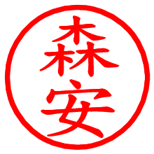 [朱肉の色]を選び、入力窓に“森安”と入力して[生成]ボタンを押すと、印影が更新され、リンクから電子印鑑(デジタル印影)がダウンロードできます。 電子印鑑「森安」の作り方文字表示が変なときや、文字バランスが悪いときは[字形切替]のチェックボックスでON/OFFを切り替え[生成]しなおしてください。 生成される画像は通常の印影「森安.png」と、にじみを表現した少し太めの印影「森安B.png」の背面透過PNG形式2種と、鮮明なPDF形式の印影「森安.pdf」の計3種類です。 朱肉の微妙な色の違いを7色で表現しました。デフォルト(左端)は、JISが定めた朱肉の色のマンセル値(7.5R 5/14)をRGB値(217,66,54)に変換したものになっています。 「電子透かし」にチェックを入れて[生成]ボタンを押すと、タイムスタンプを透かしとして埋め込んだセキュアな電子印鑑が作れます。詳細は別ページの「電子透かしとタイムスタンプ」でご覧ください。  森安さんの日付印が作れます。「日付スタンプメーカー」は、社内向けの書類に利用されることの多い日付印(データ印)が無料で作れるWebアプリケーションです。 中段に日付が入り、上段と下段は、ともに8文字まで文字が入ります。   古代文字で落款印が作れます。「落款スタンプメーカー」で作品を引き立たせる落款印が作れます。  なりきり書道 「落款スタンプメーカー」で作成した落款印の全体的な配置バランスの確認にご利用いただけます。デザインのワンポイントやラインスタンプ等にもお使いください。  遊び心ある森安さんの角印はいかが? 絵文字が使えてLINEスタンプや年賀状にも使える消しゴムはんこ風の電子印鑑が作れます。  画像スタンプメーカーは、猫派の方はもちろん。犬派の方にもおすすめしたいペットなどのお気に入りの画像とかわいいタッチの文字が入るほっこりしたスタンプです。 マイスタンプメーカーとは法的な電子印鑑にはあたりませんので三文判的な位置付けでご利用ください。 | ||