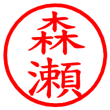 [朱肉の色]を選び、入力窓に“森瀬”と入力して[生成]ボタンを押すと、印影が更新され、リンクから電子印鑑(デジタル印影)がダウンロードできます。 電子印鑑「森瀬」の作り方文字表示が変なときや、文字バランスが悪いときは[字形切替]のチェックボックスでON/OFFを切り替え[生成]しなおしてください。 生成される画像は通常の印影「森瀬.png」と、にじみを表現した少し太めの印影「森瀬B.png」の背面透過PNG形式2種と、鮮明なPDF形式の印影「森瀬.pdf」の計3種類です。 朱肉の微妙な色の違いを7色で表現しました。デフォルト(左端)は、JISが定めた朱肉の色のマンセル値(7.5R 5/14)をRGB値(217,66,54)に変換したものになっています。 「電子透かし」にチェックを入れて[生成]ボタンを押すと、タイムスタンプを電子透かしとして埋め込んだセキュアな電子印鑑が作れます。詳細は別ページの「タイムスタンプと電子透かし」でご覧ください。 森瀬さんの日付印が作れます。「日付スタンプメーカー」は、社内向けの書類に利用されることの多い日付印(データ印)が無料で作れるWebアプリケーションです。中段に日付が入り、上段と下段は、ともに8文字まで文字が入ります。 ![]() 古代文字で落款印が作れます。「落款スタンプメーカー」で作品を引き立たせる落款印が作れます。