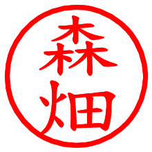 [朱肉の色]を選び、入力窓に“森畑”と入力して[生成]ボタンを押すと、印影が更新され、リンクから電子印鑑(デジタル印影)がダウンロードできます。 電子印鑑「森畑」の作り方文字表示が変なときや、文字バランスが悪いときは[字形切替]のチェックボックスでON/OFFを切り替え[生成]しなおしてください。 生成される画像は通常の印影「森畑.png」と、にじみを表現した少し太めの印影「森畑B.png」の背面透過PNG形式2種と、鮮明なPDF形式の印影「森畑.pdf」の計3種類です。 朱肉の微妙な色の違いを7色で表現しました。デフォルト(左端)は、JISが定めた朱肉の色のマンセル値(7.5R 5/14)をRGB値(217,66,54)に変換したものになっています。 「電子透かし」にチェックを入れて[生成]ボタンを押すと、タイムスタンプを電子透かしとして埋め込んだセキュアな電子印鑑が作れます。詳細は別ページの「タイムスタンプと電子透かし」でご覧ください。 森畑さんの日付印が作れます。「日付スタンプメーカー」は、社内向けの書類に利用されることの多い日付印(データ印)が無料で作れるWebアプリケーションです。中段に日付が入り、上段と下段は、ともに8文字まで文字が入ります。 ![]() 古代文字で落款印が作れます。「落款スタンプメーカー」で作品を引き立たせる落款印が作れます。