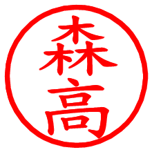 [朱肉の色]を選び、入力窓に“森高”と入力して[生成]ボタンを押すと、印影が更新され、リンクから電子印鑑(デジタル印影)がダウンロードできます。 電子印鑑「森高」の作り方文字表示が変なときや、文字バランスが悪いときは[字形切替]のチェックボックスでON/OFFを切り替え[生成]しなおしてください。 生成される画像は通常の印影「森高.png」と、にじみを表現した少し太めの印影「森高B.png」の背面透過PNG形式2種と、鮮明なPDF形式の印影「森高.pdf」の計3種類です。 朱肉の微妙な色の違いを7色で表現しました。デフォルト(左端)は、JISが定めた朱肉の色のマンセル値(7.5R 5/14)をRGB値(217,66,54)に変換したものになっています。 「電子透かし」にチェックを入れて[生成]ボタンを押すと、タイムスタンプを電子透かしとして埋め込んだセキュアな電子印鑑が作れます。詳細は別ページの「タイムスタンプと電子透かし」でご覧ください。 森高さんの日付印が作れます。「日付スタンプメーカー」は、社内向けの書類に利用されることの多い日付印(データ印)が無料で作れるWebアプリケーションです。中段に日付が入り、上段と下段は、ともに8文字まで文字が入ります。 ![]() 古代文字で落款印が作れます。「落款スタンプメーカー」で作品を引き立たせる落款印が作れます。