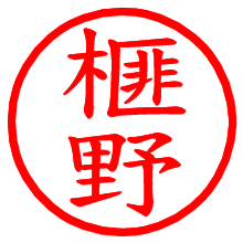 [朱肉の色]を選び、入力窓に“榧野”と入力して[生成]ボタンを押すと、印影が更新され、リンクから電子印鑑(デジタル印影)がダウンロードできます。 電子印鑑「榧野」の作り方文字表示が変なときや、文字バランスが悪いときは[字形切替]のチェックボックスでON/OFFを切り替え[生成]しなおしてください。 生成される画像は通常の印影「榧野.png」と、にじみを表現した少し太めの印影「榧野B.png」の背面透過PNG形式2種と、鮮明なPDF形式の印影「榧野.pdf」の計3種類です。 朱肉の微妙な色の違いを7色で表現しました。デフォルト(左端)は、JISが定めた朱肉の色のマンセル値(7.5R 5/14)をRGB値(217,66,54)に変換したものになっています。 「電子透かし」にチェックを入れて[生成]ボタンを押すと、タイムスタンプを透かしとして埋め込んだセキュアな電子印鑑が作れます。詳細は別ページの「電子透かしとタイムスタンプ」でご覧ください。  榧野さんの日付印が作れます。「日付スタンプメーカー」は、社内向けの書類に利用されることの多い日付印(データ印)が無料で作れるWebアプリケーションです。中段に日付が入り、上段と下段は、ともに8文字まで文字が入ります。 ![]()  古代文字で落款印が作れます。「落款スタンプメーカー」で作品を引き立たせる落款印が作れます。