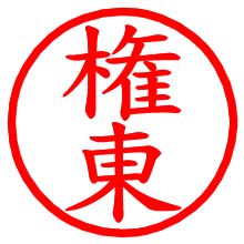 [朱肉の色]を選び、入力窓に“権東”と入力して[生成]ボタンを押すと、印影が更新され、リンクから電子印鑑(デジタル印影)がダウンロードできます。 電子印鑑「権東」の作り方文字表示が変なときや、文字バランスが悪いときは[字形切替]のチェックボックスでON/OFFを切り替え[生成]しなおしてください。 生成される画像は通常の印影「権東.png」と、にじみを表現した少し太めの印影「権東B.png」の背面透過PNG形式2種と、鮮明なPDF形式の印影「権東.pdf」の計3種類です。 朱肉の微妙な色の違いを7色で表現しました。デフォルト(左端)は、JISが定めた朱肉の色のマンセル値(7.5R 5/14)をRGB値(217,66,54)に変換したものになっています。 「電子透かし」にチェックを入れて[生成]ボタンを押すと、タイムスタンプを電子透かしとして埋め込んだセキュアな電子印鑑が作れます。詳細は別ページの「タイムスタンプと電子透かし」でご覧ください。 権東さんの日付印が作れます。「日付スタンプメーカー」は、社内向けの書類に利用されることの多い日付印(データ印)が無料で作れるWebアプリケーションです。中段に日付が入り、上段と下段は、ともに8文字まで文字が入ります。 ![]() 古代文字で落款印が作れます。「落款スタンプメーカー」で作品を引き立たせる落款印が作れます。