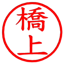 [朱肉の色]を選び、入力窓に“橋上”と入力して[生成]ボタンを押すと、印影が更新され、リンクから電子印鑑(デジタル印影)がダウンロードできます。 電子印鑑「橋上」の作り方文字表示が変なときや、文字バランスが悪いときは[字形切替]のチェックボックスでON/OFFを切り替え[生成]しなおしてください。 生成される画像は通常の印影「橋上.png」と、にじみを表現した少し太めの印影「橋上B.png」の背面透過PNG形式2種と、鮮明なPDF形式の印影「橋上.pdf」の計3種類です。 朱肉の微妙な色の違いを7色で表現しました。デフォルト(左端)は、JISが定めた朱肉の色のマンセル値(7.5R 5/14)をRGB値(217,66,54)に変換したものになっています。 「電子透かし」にチェックを入れて[生成]ボタンを押すと、タイムスタンプを電子透かしとして埋め込んだセキュアな電子印鑑が作れます。詳細は別ページの「タイムスタンプと電子透かし」でご覧ください。 橋上さんの日付印が作れます。「日付スタンプメーカー」は、社内向けの書類に利用されることの多い日付印(データ印)が無料で作れるWebアプリケーションです。中段に日付が入り、上段と下段は、ともに8文字まで文字が入ります。 ![]() 古代文字で落款印が作れます。「落款スタンプメーカー」で作品を引き立たせる落款印が作れます。