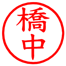 [朱肉の色]を選び、入力窓に“橋中”と入力して[生成]ボタンを押すと、印影が更新され、リンクから電子印鑑(デジタル印影)がダウンロードできます。 電子印鑑「橋中」の作り方文字表示が変なときや、文字バランスが悪いときは[字形切替]のチェックボックスでON/OFFを切り替え[生成]しなおしてください。 生成される画像は通常の印影「橋中.png」と、にじみを表現した少し太めの印影「橋中B.png」の背面透過PNG形式2種と、鮮明なPDF形式の印影「橋中.pdf」の計3種類です。 朱肉の微妙な色の違いを7色で表現しました。デフォルト(左端)は、JISが定めた朱肉の色のマンセル値(7.5R 5/14)をRGB値(217,66,54)に変換したものになっています。 「電子透かし」にチェックを入れて[生成]ボタンを押すと、タイムスタンプを電子透かしとして埋め込んだセキュアな電子印鑑が作れます。詳細は別ページの「タイムスタンプと電子透かし」でご覧ください。 橋中さんの日付印が作れます。「日付スタンプメーカー」は、社内向けの書類に利用されることの多い日付印(データ印)が無料で作れるWebアプリケーションです。中段に日付が入り、上段と下段は、ともに8文字まで文字が入ります。 ![]() 古代文字で落款印が作れます。「落款スタンプメーカー」で作品を引き立たせる落款印が作れます。