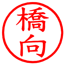 [朱肉の色]を選び、入力窓に“橋向”と入力して[生成]ボタンを押すと、印影が更新され、リンクから電子印鑑(デジタル印影)がダウンロードできます。 電子印鑑「橋向」の作り方文字表示が変なときや、文字バランスが悪いときは[字形切替]のチェックボックスでON/OFFを切り替え[生成]しなおしてください。 生成される画像は通常の印影「橋向.png」と、にじみを表現した少し太めの印影「橋向B.png」の背面透過PNG形式2種と、鮮明なPDF形式の印影「橋向.pdf」の計3種類です。 朱肉の微妙な色の違いを7色で表現しました。デフォルト(左端)は、JISが定めた朱肉の色のマンセル値(7.5R 5/14)をRGB値(217,66,54)に変換したものになっています。 「電子透かし」にチェックを入れて[生成]ボタンを押すと、タイムスタンプを電子透かしとして埋め込んだセキュアな電子印鑑が作れます。詳細は別ページの「タイムスタンプと電子透かし」でご覧ください。 橋向さんの日付印が作れます。「日付スタンプメーカー」は、社内向けの書類に利用されることの多い日付印(データ印)が無料で作れるWebアプリケーションです。中段に日付が入り、上段と下段は、ともに8文字まで文字が入ります。 ![]() 古代文字で落款印が作れます。「落款スタンプメーカー」で作品を引き立たせる落款印が作れます。