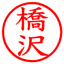 [朱肉の色]を選び、入力窓に“橋沢”と入力して[生成]ボタンを押すと、印影が更新され、リンクから電子印鑑(デジタル印影)がダウンロードできます。 電子印鑑「橋沢」の作り方文字表示が変なときや、文字バランスが悪いときは[字形切替]のチェックボックスでON/OFFを切り替え[生成]しなおしてください。 生成される画像は通常の印影「橋沢.png」と、にじみを表現した少し太めの印影「橋沢B.png」の背面透過PNG形式2種と、鮮明なPDF形式の印影「橋沢.pdf」の計3種類です。 朱肉の微妙な色の違いを7色で表現しました。デフォルト(左端)は、JISが定めた朱肉の色のマンセル値(7.5R 5/14)をRGB値(217,66,54)に変換したものになっています。 「電子透かし」にチェックを入れて[生成]ボタンを押すと、タイムスタンプを電子透かしとして埋め込んだセキュアな電子印鑑が作れます。詳細は別ページの「タイムスタンプと電子透かし」でご覧ください。 橋沢さんの日付印が作れます。「日付スタンプメーカー」は、社内向けの書類に利用されることの多い日付印(データ印)が無料で作れるWebアプリケーションです。中段に日付が入り、上段と下段は、ともに8文字まで文字が入ります。 ![]() 古代文字で落款印が作れます。「落款スタンプメーカー」で作品を引き立たせる落款印が作れます。