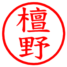 [朱肉の色]を選び、入力窓に“檀野”と入力して[生成]ボタンを押すと、印影が更新され、リンクから電子印鑑(デジタル印影)がダウンロードできます。 電子印鑑「檀野」の作り方文字表示が変なときや、文字バランスが悪いときは[字形切替]のチェックボックスでON/OFFを切り替え[生成]しなおしてください。 生成される画像は通常の印影「檀野.png」と、にじみを表現した少し太めの印影「檀野B.png」の背面透過PNG形式2種と、鮮明なPDF形式の印影「檀野.pdf」の計3種類です。 朱肉の微妙な色の違いを7色で表現しました。デフォルト(左端)は、JISが定めた朱肉の色のマンセル値(7.5R 5/14)をRGB値(217,66,54)に変換したものになっています。 「電子透かし」にチェックを入れて[生成]ボタンを押すと、タイムスタンプを電子透かしとして埋め込んだセキュアな電子印鑑が作れます。詳細は別ページの「タイムスタンプと電子透かし」でご覧ください。 檀野さんの日付印が作れます。「日付スタンプメーカー」は、社内向けの書類に利用されることの多い日付印(データ印)が無料で作れるWebアプリケーションです。中段に日付が入り、上段と下段は、ともに8文字まで文字が入ります。 ![]() 古代文字で落款印が作れます。「落款スタンプメーカー」で作品を引き立たせる落款印が作れます。