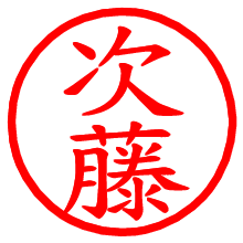 [朱肉の色]を選び、入力窓に“次藤”と入力して[生成]ボタンを押すと、印影が更新され、リンクから電子印鑑(デジタル印影)がダウンロードできます。 電子印鑑「次藤」の作り方文字表示が変なときや、文字バランスが悪いときは[字形切替]のチェックボックスでON/OFFを切り替え[生成]しなおしてください。 生成される画像は通常の印影「次藤.png」と、にじみを表現した少し太めの印影「次藤B.png」の背面透過PNG形式2種と、鮮明なPDF形式の印影「次藤.pdf」の計3種類です。 朱肉の微妙な色の違いを7色で表現しました。デフォルト(左端)は、JISが定めた朱肉の色のマンセル値(7.5R 5/14)をRGB値(217,66,54)に変換したものになっています。 「電子透かし」にチェックを入れて[生成]ボタンを押すと、タイムスタンプを電子透かしとして埋め込んだセキュアな電子印鑑が作れます。詳細は別ページの「タイムスタンプと電子透かし」でご覧ください。 次藤さんの日付印が作れます。「日付スタンプメーカー」は、社内向けの書類に利用されることの多い日付印(データ印)が無料で作れるWebアプリケーションです。中段に日付が入り、上段と下段は、ともに8文字まで文字が入ります。 ![]() 古代文字で落款印が作れます。「落款スタンプメーカー」で作品を引き立たせる落款印が作れます。