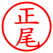 [朱肉の色]を選び、入力窓に“正尾”と入力して[生成]ボタンを押すと、印影が更新され、リンクから電子印鑑(デジタル印影)がダウンロードできます。 電子印鑑「正尾」の作り方文字表示が変なときや、文字バランスが悪いときは[字形切替]のチェックボックスでON/OFFを切り替え[生成]しなおしてください。 生成される画像は通常の印影「正尾.png」と、にじみを表現した少し太めの印影「正尾B.png」の背面透過PNG形式2種と、鮮明なPDF形式の印影「正尾.pdf」の計3種類です。 朱肉の微妙な色の違いを7色で表現しました。デフォルト(左端)は、JISが定めた朱肉の色のマンセル値(7.5R 5/14)をRGB値(217,66,54)に変換したものになっています。 「電子透かし」にチェックを入れて[生成]ボタンを押すと、タイムスタンプを電子透かしとして埋め込んだセキュアな電子印鑑が作れます。詳細は別ページの「タイムスタンプと電子透かし」でご覧ください。 正尾さんの日付印が作れます。「日付スタンプメーカー」は、社内向けの書類に利用されることの多い日付印(データ印)が無料で作れるWebアプリケーションです。中段に日付が入り、上段と下段は、ともに8文字まで文字が入ります。 ![]() 古代文字で落款印が作れます。「落款スタンプメーカー」で作品を引き立たせる落款印が作れます。