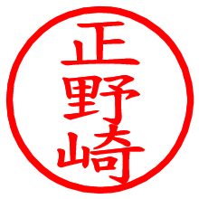 [朱肉の色]を選び、入力窓に“正野崎”と入力して[生成]ボタンを押すと、印影が更新され、リンクから電子印鑑(デジタル印影)がダウンロードできます。 電子印鑑「正野崎」の作り方文字表示が変なときや、文字バランスが悪いときは[字形切替]のチェックボックスでON/OFFを切り替え[生成]しなおしてください。 生成される画像は通常の印影「正野崎.png」と、にじみを表現した少し太めの印影「正野崎B.png」の背面透過PNG形式2種と、鮮明なPDF形式の印影「正野崎.pdf」の計3種類です。 朱肉の微妙な色の違いを7色で表現しました。デフォルト(左端)は、JISが定めた朱肉の色のマンセル値(7.5R 5/14)をRGB値(217,66,54)に変換したものになっています。 「電子透かし」にチェックを入れて[生成]ボタンを押すと、タイムスタンプを電子透かしとして埋め込んだセキュアな電子印鑑が作れます。詳細は別ページの「タイムスタンプと電子透かし」でご覧ください。 正野崎さんの日付印が作れます。「日付スタンプメーカー」は、社内向けの書類に利用されることの多い日付印(データ印)が無料で作れるWebアプリケーションです。中段に日付が入り、上段と下段は、ともに8文字まで文字が入ります。 ![]() 古代文字で落款印が作れます。「落款スタンプメーカー」で作品を引き立たせる落款印が作れます。