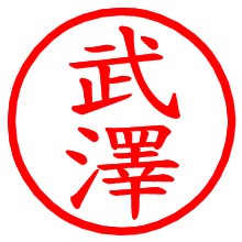 [朱肉の色]を選び、入力窓に“武澤”と入力して[生成]ボタンを押すと、印影が更新され、リンクから電子印鑑(デジタル印影)がダウンロードできます。 電子印鑑「武澤」の作り方文字表示が変なときや、文字バランスが悪いときは[字形切替]のチェックボックスでON/OFFを切り替え[生成]しなおしてください。 生成される画像は通常の印影「武澤.png」と、にじみを表現した少し太めの印影「武澤B.png」の背面透過PNG形式2種と、鮮明なPDF形式の印影「武澤.pdf」の計3種類です。 朱肉の微妙な色の違いを7色で表現しました。デフォルト(左端)は、JISが定めた朱肉の色のマンセル値(7.5R 5/14)をRGB値(217,66,54)に変換したものになっています。 「電子透かし」にチェックを入れて[生成]ボタンを押すと、タイムスタンプを電子透かしとして埋め込んだセキュアな電子印鑑が作れます。詳細は別ページの「タイムスタンプと電子透かし」でご覧ください。 武澤さんの日付印が作れます。「日付スタンプメーカー」は、社内向けの書類に利用されることの多い日付印(データ印)が無料で作れるWebアプリケーションです。中段に日付が入り、上段と下段は、ともに8文字まで文字が入ります。 ![]() 古代文字で落款印が作れます。「落款スタンプメーカー」で作品を引き立たせる落款印が作れます。