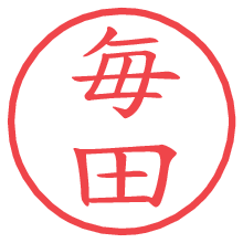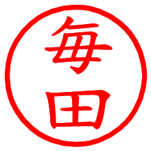 [朱肉の色]を選び、入力窓に“毎田”と入力して[生成]ボタンを押すと、印影が更新され、リンクから電子印鑑(デジタル印影)がダウンロードできます。 電子印鑑「毎田」の作り方文字表示が変なときや、文字バランスが悪いときは[字形切替]のチェックボックスでON/OFFを切り替え[生成]しなおしてください。 生成される画像は通常の印影「毎田.png」と、にじみを表現した少し太めの印影「毎田B.png」の背面透過PNG形式2種と、鮮明なPDF形式の印影「毎田.pdf」の計3種類です。 朱肉の微妙な色の違いを7色で表現しました。デフォルト(左端)は、JISが定めた朱肉の色のマンセル値(7.5R 5/14)をRGB値(217,66,54)に変換したものになっています。 「電子透かし」にチェックを入れて[生成]ボタンを押すと、タイムスタンプを電子透かしとして埋め込んだセキュアな電子印鑑が作れます。詳細は別ページの「タイムスタンプと電子透かし」でご覧ください。 毎田さんの日付印が作れます。「日付スタンプメーカー」は、社内向けの書類に利用されることの多い日付印(データ印)が無料で作れるWebアプリケーションです。中段に日付が入り、上段と下段は、ともに8文字まで文字が入ります。 ![]() 古代文字で落款印が作れます。「落款スタンプメーカー」で作品を引き立たせる落款印が作れます。