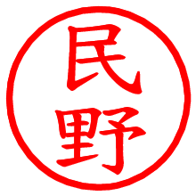 [朱肉の色]を選び、入力窓に“民野”と入力して[生成]ボタンを押すと、印影が更新され、リンクから電子印鑑(デジタル印影)がダウンロードできます。 電子印鑑「民野」の作り方文字表示が変なときや、文字バランスが悪いときは[字形切替]のチェックボックスでON/OFFを切り替え[生成]しなおしてください。 生成される画像は通常の印影「民野.png」と、にじみを表現した少し太めの印影「民野B.png」の背面透過PNG形式2種と、鮮明なPDF形式の印影「民野.pdf」の計3種類です。 朱肉の微妙な色の違いを7色で表現しました。デフォルト(左端)は、JISが定めた朱肉の色のマンセル値(7.5R 5/14)をRGB値(217,66,54)に変換したものになっています。 「電子透かし」にチェックを入れて[生成]ボタンを押すと、タイムスタンプを電子透かしとして埋め込んだセキュアな電子印鑑が作れます。詳細は別ページの「タイムスタンプと電子透かし」でご覧ください。 民野さんの日付印が作れます。「日付スタンプメーカー」は、社内向けの書類に利用されることの多い日付印(データ印)が無料で作れるWebアプリケーションです。中段に日付が入り、上段と下段は、ともに8文字まで文字が入ります。 ![]() 古代文字で落款印が作れます。「落款スタンプメーカー」で作品を引き立たせる落款印が作れます。
