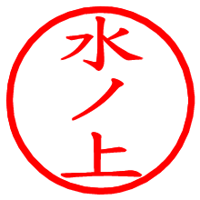 [朱肉の色]を選び、入力窓に“水ノ上”と入力して[生成]ボタンを押すと、印影が更新され、リンクから電子印鑑(デジタル印影)がダウンロードできます。 電子印鑑「水ノ上」の作り方文字表示が変なときや、文字バランスが悪いときは[字形切替]のチェックボックスでON/OFFを切り替え[生成]しなおしてください。 生成される画像は通常の印影「水ノ上.png」と、にじみを表現した少し太めの印影「水ノ上B.png」の背面透過PNG形式2種と、鮮明なPDF形式の印影「水ノ上.pdf」の計3種類です。 朱肉の微妙な色の違いを7色で表現しました。デフォルト(左端)は、JISが定めた朱肉の色のマンセル値(7.5R 5/14)をRGB値(217,66,54)に変換したものになっています。 「電子透かし」にチェックを入れて[生成]ボタンを押すと、タイムスタンプを電子透かしとして埋め込んだセキュアな電子印鑑が作れます。詳細は別ページの「タイムスタンプと電子透かし」でご覧ください。 水ノ上さんの日付印が作れます。「日付スタンプメーカー」は、社内向けの書類に利用されることの多い日付印(データ印)が無料で作れるWebアプリケーションです。中段に日付が入り、上段と下段は、ともに8文字まで文字が入ります。 ![]() 古代文字で落款印が作れます。「落款スタンプメーカー」で作品を引き立たせる落款印が作れます。