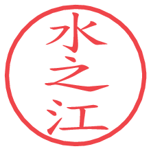 [朱肉の色]を選び、入力窓に“水之江”と入力して[生成]ボタンを押すと、印影が更新され、リンクから電子印鑑(デジタル印影)がダウンロードできます。 電子印鑑「水之江」の作り方文字表示が変なときや、文字バランスが悪いときは[字形切替]のチェックボックスでON/OFFを切り替え[生成]しなおしてください。 生成される画像は通常の印影「水之江.png」と、にじみを表現した少し太めの印影「水之江B.png」の背面透過PNG形式2種と、鮮明なPDF形式の印影「水之江.pdf」の計3種類です。 朱肉の微妙な色の違いを7色で表現しました。デフォルト(左端)は、JISが定めた朱肉の色のマンセル値(7.5R 5/14)をRGB値(217,66,54)に変換したものになっています。 「電子透かし」にチェックを入れて[生成]ボタンを押すと、タイムスタンプを透かしとして埋め込んだセキュアな電子印鑑が作れます。詳細は別ページの「電子透かしとタイムスタンプ」でご覧ください。  水之江さんの日付印が作れます。「日付スタンプメーカー」は、社内向けの書類に利用されることの多い日付印(データ印)が無料で作れるWebアプリケーションです。中段に日付が入り、上段と下段は、ともに8文字まで文字が入ります。 ![]()  古代文字で落款印が作れます。「落款スタンプメーカー」で作品を引き立たせる落款印が作れます。