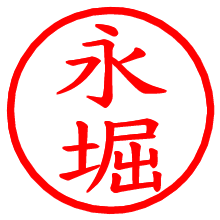 [朱肉の色]を選び、入力窓に“永堀”と入力して[生成]ボタンを押すと、印影が更新され、リンクから電子印鑑(デジタル印影)がダウンロードできます。 電子印鑑「永堀」の作り方文字表示が変なときや、文字バランスが悪いときは[字形切替]のチェックボックスでON/OFFを切り替え[生成]しなおしてください。 生成される画像は通常の印影「永堀.png」と、にじみを表現した少し太めの印影「永堀B.png」の背面透過PNG形式2種と、鮮明なPDF形式の印影「永堀.pdf」の計3種類です。 朱肉の微妙な色の違いを7色で表現しました。デフォルト(左端)は、JISが定めた朱肉の色のマンセル値(7.5R 5/14)をRGB値(217,66,54)に変換したものになっています。 「電子透かし」にチェックを入れて[生成]ボタンを押すと、タイムスタンプを電子透かしとして埋め込んだセキュアな電子印鑑が作れます。詳細は別ページの「タイムスタンプと電子透かし」でご覧ください。 永堀さんの日付印が作れます。「日付スタンプメーカー」は、社内向けの書類に利用されることの多い日付印(データ印)が無料で作れるWebアプリケーションです。中段に日付が入り、上段と下段は、ともに8文字まで文字が入ります。 ![]() 古代文字で落款印が作れます。「落款スタンプメーカー」で作品を引き立たせる落款印が作れます。