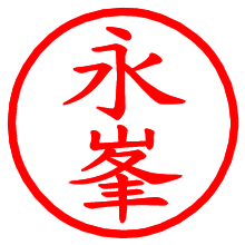 [朱肉の色]を選び、入力窓に“永峯”と入力して[生成]ボタンを押すと、印影が更新され、リンクから電子印鑑(デジタル印影)がダウンロードできます。 電子印鑑「永峯」の作り方文字表示が変なときや、文字バランスが悪いときは[字形切替]のチェックボックスでON/OFFを切り替え[生成]しなおしてください。 生成される画像は通常の印影「永峯.png」と、にじみを表現した少し太めの印影「永峯B.png」の背面透過PNG形式2種と、鮮明なPDF形式の印影「永峯.pdf」の計3種類です。 朱肉の微妙な色の違いを7色で表現しました。デフォルト(左端)は、JISが定めた朱肉の色のマンセル値(7.5R 5/14)をRGB値(217,66,54)に変換したものになっています。 「電子透かし」にチェックを入れて[生成]ボタンを押すと、タイムスタンプを電子透かしとして埋め込んだセキュアな電子印鑑が作れます。詳細は別ページの「タイムスタンプと電子透かし」でご覧ください。 永峯さんの日付印が作れます。「日付スタンプメーカー」は、社内向けの書類に利用されることの多い日付印(データ印)が無料で作れるWebアプリケーションです。中段に日付が入り、上段と下段は、ともに8文字まで文字が入ります。 ![]() 古代文字で落款印が作れます。「落款スタンプメーカー」で作品を引き立たせる落款印が作れます。