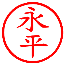 [朱肉の色]を選び、入力窓に“永平”と入力して[生成]ボタンを押すと、印影が更新され、リンクから電子印鑑(デジタル印影)がダウンロードできます。 電子印鑑「永平」の作り方文字表示が変なときや、文字バランスが悪いときは[字形切替]のチェックボックスでON/OFFを切り替え[生成]しなおしてください。 生成される画像は通常の印影「永平.png」と、にじみを表現した少し太めの印影「永平B.png」の背面透過PNG形式2種と、鮮明なPDF形式の印影「永平.pdf」の計3種類です。 朱肉の微妙な色の違いを7色で表現しました。デフォルト(左端)は、JISが定めた朱肉の色のマンセル値(7.5R 5/14)をRGB値(217,66,54)に変換したものになっています。 「電子透かし」にチェックを入れて[生成]ボタンを押すと、タイムスタンプを電子透かしとして埋め込んだセキュアな電子印鑑が作れます。詳細は別ページの「タイムスタンプと電子透かし」でご覧ください。 永平さんの日付印が作れます。「日付スタンプメーカー」は、社内向けの書類に利用されることの多い日付印(データ印)が無料で作れるWebアプリケーションです。中段に日付が入り、上段と下段は、ともに8文字まで文字が入ります。 ![]() 古代文字で落款印が作れます。「落款スタンプメーカー」で作品を引き立たせる落款印が作れます。
