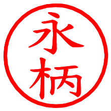 [朱肉の色]を選び、入力窓に“永柄”と入力して[生成]ボタンを押すと、印影が更新され、リンクから電子印鑑(デジタル印影)がダウンロードできます。 電子印鑑「永柄」の作り方文字表示が変なときや、文字バランスが悪いときは[字形切替]のチェックボックスでON/OFFを切り替え[生成]しなおしてください。 生成される画像は通常の印影「永柄.png」と、にじみを表現した少し太めの印影「永柄B.png」の背面透過PNG形式2種と、鮮明なPDF形式の印影「永柄.pdf」の計3種類です。 朱肉の微妙な色の違いを7色で表現しました。デフォルト(左端)は、JISが定めた朱肉の色のマンセル値(7.5R 5/14)をRGB値(217,66,54)に変換したものになっています。 「電子透かし」にチェックを入れて[生成]ボタンを押すと、タイムスタンプを電子透かしとして埋め込んだセキュアな電子印鑑が作れます。詳細は別ページの「タイムスタンプと電子透かし」でご覧ください。 永柄さんの日付印が作れます。「日付スタンプメーカー」は、社内向けの書類に利用されることの多い日付印(データ印)が無料で作れるWebアプリケーションです。中段に日付が入り、上段と下段は、ともに8文字まで文字が入ります。 ![]() 古代文字で落款印が作れます。「落款スタンプメーカー」で作品を引き立たせる落款印が作れます。