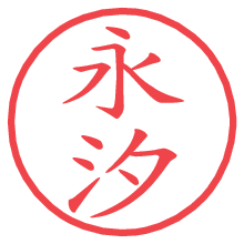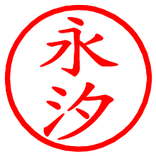 [朱肉の色]を選び、入力窓に“永汐”と入力して[生成]ボタンを押すと、印影が更新され、リンクから電子印鑑(デジタル印影)がダウンロードできます。 電子印鑑「永汐」の作り方文字表示が変なときや、文字バランスが悪いときは[字形切替]のチェックボックスでON/OFFを切り替え[生成]しなおしてください。 生成される画像は通常の印影「永汐.png」と、にじみを表現した少し太めの印影「永汐B.png」の背面透過PNG形式2種と、鮮明なPDF形式の印影「永汐.pdf」の計3種類です。 朱肉の微妙な色の違いを7色で表現しました。デフォルト(左端)は、JISが定めた朱肉の色のマンセル値(7.5R 5/14)をRGB値(217,66,54)に変換したものになっています。 「電子透かし」にチェックを入れて[生成]ボタンを押すと、タイムスタンプを電子透かしとして埋め込んだセキュアな電子印鑑が作れます。詳細は別ページの「タイムスタンプと電子透かし」でご覧ください。 永汐さんの日付印が作れます。「日付スタンプメーカー」は、社内向けの書類に利用されることの多い日付印(データ印)が無料で作れるWebアプリケーションです。中段に日付が入り、上段と下段は、ともに8文字まで文字が入ります。 ![]() 古代文字で落款印が作れます。「落款スタンプメーカー」で作品を引き立たせる落款印が作れます。