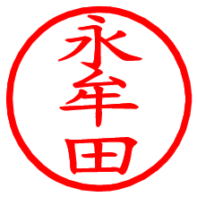 [朱肉の色]を選び、入力窓に“永牟田”と入力して[生成]ボタンを押すと、印影が更新され、リンクから電子印鑑(デジタル印影)がダウンロードできます。 電子印鑑「永牟田」の作り方文字表示が変なときや、文字バランスが悪いときは[字形切替]のチェックボックスでON/OFFを切り替え[生成]しなおしてください。 生成される画像は通常の印影「永牟田.png」と、にじみを表現した少し太めの印影「永牟田B.png」の背面透過PNG形式2種と、鮮明なPDF形式の印影「永牟田.pdf」の計3種類です。 朱肉の微妙な色の違いを7色で表現しました。デフォルト(左端)は、JISが定めた朱肉の色のマンセル値(7.5R 5/14)をRGB値(217,66,54)に変換したものになっています。 「電子透かし」にチェックを入れて[生成]ボタンを押すと、タイムスタンプを透かしとして埋め込んだセキュアな電子印鑑が作れます。詳細は別ページの「電子透かしとタイムスタンプ」でご覧ください。 ![]() 中段に日付が入り、上段と下段は、ともに8文字まで文字が入ります。 ![]() ![]() ![]() 「落款スタンプメーカー」で作成した落款印の全体的な配置バランスの確認にご利用いただけます。デザインのワンポイントやラインスタンプ等にもお使いください。 ![]() 絵文字が使えてLINEスタンプや年賀状にも使える消しゴムはんこ風の電子印鑑が作れます。 ![]() マイスタンプメーカーとは法的な電子印鑑にはあたりませんので三文判的な位置付けでご利用ください。 |