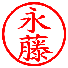 [朱肉の色]を選び、入力窓に“永藤”と入力して[生成]ボタンを押すと、印影が更新され、リンクから電子印鑑(デジタル印影)がダウンロードできます。 電子印鑑「永藤」の作り方文字表示が変なときや、文字バランスが悪いときは[字形切替]のチェックボックスでON/OFFを切り替え[生成]しなおしてください。 生成される画像は通常の印影「永藤.png」と、にじみを表現した少し太めの印影「永藤B.png」の背面透過PNG形式2種と、鮮明なPDF形式の印影「永藤.pdf」の計3種類です。 朱肉の微妙な色の違いを7色で表現しました。デフォルト(左端)は、JISが定めた朱肉の色のマンセル値(7.5R 5/14)をRGB値(217,66,54)に変換したものになっています。 「電子透かし」にチェックを入れて[生成]ボタンを押すと、タイムスタンプを電子透かしとして埋め込んだセキュアな電子印鑑が作れます。詳細は別ページの「タイムスタンプと電子透かし」でご覧ください。 永藤さんの日付印が作れます。「日付スタンプメーカー」は、社内向けの書類に利用されることの多い日付印(データ印)が無料で作れるWebアプリケーションです。中段に日付が入り、上段と下段は、ともに8文字まで文字が入ります。 ![]() 古代文字で落款印が作れます。「落款スタンプメーカー」で作品を引き立たせる落款印が作れます。