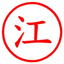 [朱肉の色]を選び、入力窓に“江”と入力して[生成]ボタンを押すと、印影が更新され、リンクから電子印鑑(デジタル印影)がダウンロードできます。 電子印鑑「江」の作り方文字表示が変なときや、文字バランスが悪いときは[字形切替]のチェックボックスでON/OFFを切り替え[生成]しなおしてください。 生成される画像は通常の印影「江.png」と、にじみを表現した少し太めの印影「江B.png」の背面透過PNG形式2種と、鮮明なPDF形式の印影「江.pdf」の計3種類です。 朱肉の微妙な色の違いを7色で表現しました。デフォルト(左端)は、JISが定めた朱肉の色のマンセル値(7.5R 5/14)をRGB値(217,66,54)に変換したものになっています。 「電子透かし」にチェックを入れて[生成]ボタンを押すと、タイムスタンプを電子透かしとして埋め込んだセキュアな電子印鑑が作れます。詳細は別ページの「タイムスタンプと電子透かし」でご覧ください。 江さんの日付印が作れます。「日付スタンプメーカー」は、社内向けの書類に利用されることの多い日付印(データ印)が無料で作れるWebアプリケーションです。中段に日付が入り、上段と下段は、ともに8文字まで文字が入ります。 ![]() 古代文字で落款印が作れます。「落款スタンプメーカー」で作品を引き立たせる落款印が作れます。