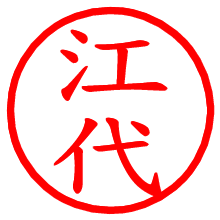 [朱肉の色]を選び、入力窓に“江代”と入力して[生成]ボタンを押すと、印影が更新され、リンクから電子印鑑(デジタル印影)がダウンロードできます。 電子印鑑「江代」の作り方文字表示が変なときや、文字バランスが悪いときは[字形切替]のチェックボックスでON/OFFを切り替え[生成]しなおしてください。 生成される画像は通常の印影「江代.png」と、にじみを表現した少し太めの印影「江代B.png」の背面透過PNG形式2種と、鮮明なPDF形式の印影「江代.pdf」の計3種類です。 朱肉の微妙な色の違いを7色で表現しました。デフォルト(左端)は、JISが定めた朱肉の色のマンセル値(7.5R 5/14)をRGB値(217,66,54)に変換したものになっています。 「電子透かし」にチェックを入れて[生成]ボタンを押すと、タイムスタンプを電子透かしとして埋め込んだセキュアな電子印鑑が作れます。詳細は別ページの「タイムスタンプと電子透かし」でご覧ください。 江代さんの日付印が作れます。「日付スタンプメーカー」は、社内向けの書類に利用されることの多い日付印(データ印)が無料で作れるWebアプリケーションです。中段に日付が入り、上段と下段は、ともに8文字まで文字が入ります。 ![]() 古代文字で落款印が作れます。「落款スタンプメーカー」で作品を引き立たせる落款印が作れます。