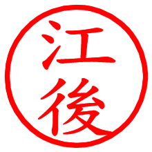 [朱肉の色]を選び、入力窓に“江後”と入力して[生成]ボタンを押すと、印影が更新され、リンクから電子印鑑(デジタル印影)がダウンロードできます。 電子印鑑「江後」の作り方文字表示が変なときや、文字バランスが悪いときは[字形切替]のチェックボックスでON/OFFを切り替え[生成]しなおしてください。 生成される画像は通常の印影「江後.png」と、にじみを表現した少し太めの印影「江後B.png」の背面透過PNG形式2種と、鮮明なPDF形式の印影「江後.pdf」の計3種類です。 朱肉の微妙な色の違いを7色で表現しました。デフォルト(左端)は、JISが定めた朱肉の色のマンセル値(7.5R 5/14)をRGB値(217,66,54)に変換したものになっています。 「電子透かし」にチェックを入れて[生成]ボタンを押すと、タイムスタンプを電子透かしとして埋め込んだセキュアな電子印鑑が作れます。詳細は別ページの「タイムスタンプと電子透かし」でご覧ください。 江後さんの日付印が作れます。「日付スタンプメーカー」は、社内向けの書類に利用されることの多い日付印(データ印)が無料で作れるWebアプリケーションです。中段に日付が入り、上段と下段は、ともに8文字まで文字が入ります。 ![]() 古代文字で落款印が作れます。「落款スタンプメーカー」で作品を引き立たせる落款印が作れます。