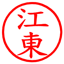 [朱肉の色]を選び、入力窓に“江東”と入力して[生成]ボタンを押すと、印影が更新され、リンクから電子印鑑(デジタル印影)がダウンロードできます。 電子印鑑「江東」の作り方文字表示が変なときや、文字バランスが悪いときは[字形切替]のチェックボックスでON/OFFを切り替え[生成]しなおしてください。 生成される画像は通常の印影「江東.png」と、にじみを表現した少し太めの印影「江東B.png」の背面透過PNG形式2種と、鮮明なPDF形式の印影「江東.pdf」の計3種類です。 朱肉の微妙な色の違いを7色で表現しました。デフォルト(左端)は、JISが定めた朱肉の色のマンセル値(7.5R 5/14)をRGB値(217,66,54)に変換したものになっています。 「電子透かし」にチェックを入れて[生成]ボタンを押すと、タイムスタンプを電子透かしとして埋め込んだセキュアな電子印鑑が作れます。詳細は別ページの「タイムスタンプと電子透かし」でご覧ください。 江東さんの日付印が作れます。「日付スタンプメーカー」は、社内向けの書類に利用されることの多い日付印(データ印)が無料で作れるWebアプリケーションです。中段に日付が入り、上段と下段は、ともに8文字まで文字が入ります。 ![]() 古代文字で落款印が作れます。「落款スタンプメーカー」で作品を引き立たせる落款印が作れます。