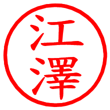 [朱肉の色]を選び、入力窓に“江澤”と入力して[生成]ボタンを押すと、印影が更新され、リンクから電子印鑑(デジタル印影)がダウンロードできます。 電子印鑑「江澤」の作り方文字表示が変なときや、文字バランスが悪いときは[字形切替]のチェックボックスでON/OFFを切り替え[生成]しなおしてください。 生成される画像は通常の印影「江澤.png」と、にじみを表現した少し太めの印影「江澤B.png」の背面透過PNG形式2種と、鮮明なPDF形式の印影「江澤.pdf」の計3種類です。 朱肉の微妙な色の違いを7色で表現しました。デフォルト(左端)は、JISが定めた朱肉の色のマンセル値(7.5R 5/14)をRGB値(217,66,54)に変換したものになっています。 「電子透かし」にチェックを入れて[生成]ボタンを押すと、タイムスタンプを透かしとして埋め込んだセキュアな電子印鑑が作れます。詳細は別ページの「電子透かしとタイムスタンプ」でご覧ください。 江澤さんの日付印が作れます。「日付スタンプメーカー」は、社内向けの書類に利用されることの多い日付印(データ印)が無料で作れるWebアプリケーションです。中段に日付が入り、上段と下段は、ともに8文字まで文字が入ります。 ![]() 古代文字で落款印が作れます。「落款スタンプメーカー」で作品を引き立たせる落款印が作れます。
