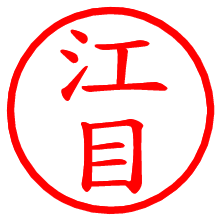 [朱肉の色]を選び、入力窓に“江目”と入力して[生成]ボタンを押すと、印影が更新され、リンクから電子印鑑(デジタル印影)がダウンロードできます。 電子印鑑「江目」の作り方文字表示が変なときや、文字バランスが悪いときは[字形切替]のチェックボックスでON/OFFを切り替え[生成]しなおしてください。 生成される画像は通常の印影「江目.png」と、にじみを表現した少し太めの印影「江目B.png」の背面透過PNG形式2種と、鮮明なPDF形式の印影「江目.pdf」の計3種類です。 朱肉の微妙な色の違いを7色で表現しました。デフォルト(左端)は、JISが定めた朱肉の色のマンセル値(7.5R 5/14)をRGB値(217,66,54)に変換したものになっています。 「電子透かし」にチェックを入れて[生成]ボタンを押すと、タイムスタンプを電子透かしとして埋め込んだセキュアな電子印鑑が作れます。詳細は別ページの「タイムスタンプと電子透かし」でご覧ください。 江目さんの日付印が作れます。「日付スタンプメーカー」は、社内向けの書類に利用されることの多い日付印(データ印)が無料で作れるWebアプリケーションです。中段に日付が入り、上段と下段は、ともに8文字まで文字が入ります。 ![]() 古代文字で落款印が作れます。「落款スタンプメーカー」で作品を引き立たせる落款印が作れます。