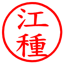 [朱肉の色]を選び、入力窓に“江種”と入力して[生成]ボタンを押すと、印影が更新され、リンクから電子印鑑(デジタル印影)がダウンロードできます。 電子印鑑「江種」の作り方文字表示が変なときや、文字バランスが悪いときは[字形切替]のチェックボックスでON/OFFを切り替え[生成]しなおしてください。 生成される画像は通常の印影「江種.png」と、にじみを表現した少し太めの印影「江種B.png」の背面透過PNG形式2種と、鮮明なPDF形式の印影「江種.pdf」の計3種類です。 朱肉の微妙な色の違いを7色で表現しました。デフォルト(左端)は、JISが定めた朱肉の色のマンセル値(7.5R 5/14)をRGB値(217,66,54)に変換したものになっています。 「電子透かし」にチェックを入れて[生成]ボタンを押すと、タイムスタンプを電子透かしとして埋め込んだセキュアな電子印鑑が作れます。詳細は別ページの「タイムスタンプと電子透かし」でご覧ください。 江種さんの日付印が作れます。「日付スタンプメーカー」は、社内向けの書類に利用されることの多い日付印(データ印)が無料で作れるWebアプリケーションです。中段に日付が入り、上段と下段は、ともに8文字まで文字が入ります。 ![]() 古代文字で落款印が作れます。「落款スタンプメーカー」で作品を引き立たせる落款印が作れます。