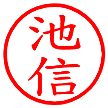 [朱肉の色]を選び、入力窓に“池信”と入力して[生成]ボタンを押すと、印影が更新され、リンクから電子印鑑(デジタル印影)がダウンロードできます。 電子印鑑「池信」の作り方文字表示が変なときや、文字バランスが悪いときは[字形切替]のチェックボックスでON/OFFを切り替え[生成]しなおしてください。 生成される画像は通常の印影「池信.png」と、にじみを表現した少し太めの印影「池信B.png」の背面透過PNG形式2種と、鮮明なPDF形式の印影「池信.pdf」の計3種類です。 朱肉の微妙な色の違いを7色で表現しました。デフォルト(左端)は、JISが定めた朱肉の色のマンセル値(7.5R 5/14)をRGB値(217,66,54)に変換したものになっています。 「電子透かし」にチェックを入れて[生成]ボタンを押すと、タイムスタンプを電子透かしとして埋め込んだセキュアな電子印鑑が作れます。詳細は別ページの「タイムスタンプと電子透かし」でご覧ください。 池信さんの日付印が作れます。「日付スタンプメーカー」は、社内向けの書類に利用されることの多い日付印(データ印)が無料で作れるWebアプリケーションです。中段に日付が入り、上段と下段は、ともに8文字まで文字が入ります。 ![]() 古代文字で落款印が作れます。「落款スタンプメーカー」で作品を引き立たせる落款印が作れます。