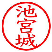 [朱肉の色]を選び、入力窓に“池宮城”と入力して[生成]ボタンを押すと、印影が更新され、リンクから電子印鑑(デジタル印影)がダウンロードできます。 電子印鑑「池宮城」の作り方文字表示が変なときや、文字バランスが悪いときは[字形切替]のチェックボックスでON/OFFを切り替え[生成]しなおしてください。 生成される画像は通常の印影「池宮城.png」と、にじみを表現した少し太めの印影「池宮城B.png」の背面透過PNG形式2種と、鮮明なPDF形式の印影「池宮城.pdf」の計3種類です。 朱肉の微妙な色の違いを7色で表現しました。デフォルト(左端)は、JISが定めた朱肉の色のマンセル値(7.5R 5/14)をRGB値(217,66,54)に変換したものになっています。 「電子透かし」にチェックを入れて[生成]ボタンを押すと、タイムスタンプを電子透かしとして埋め込んだセキュアな電子印鑑が作れます。詳細は別ページの「タイムスタンプと電子透かし」でご覧ください。 池宮城さんの日付印が作れます。「日付スタンプメーカー」は、社内向けの書類に利用されることの多い日付印(データ印)が無料で作れるWebアプリケーションです。中段に日付が入り、上段と下段は、ともに8文字まで文字が入ります。 ![]() 古代文字で落款印が作れます。「落款スタンプメーカー」で作品を引き立たせる落款印が作れます。