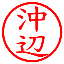 [朱肉の色]を選び、入力窓に“沖辺”と入力して[生成]ボタンを押すと、印影が更新され、リンクから電子印鑑(デジタル印影)がダウンロードできます。 電子印鑑「沖辺」の作り方文字表示が変なときや、文字バランスが悪いときは[字形切替]のチェックボックスでON/OFFを切り替え[生成]しなおしてください。 生成される画像は通常の印影「沖辺.png」と、にじみを表現した少し太めの印影「沖辺B.png」の背面透過PNG形式2種と、鮮明なPDF形式の印影「沖辺.pdf」の計3種類です。 朱肉の微妙な色の違いを7色で表現しました。デフォルト(左端)は、JISが定めた朱肉の色のマンセル値(7.5R 5/14)をRGB値(217,66,54)に変換したものになっています。 「電子透かし」にチェックを入れて[生成]ボタンを押すと、タイムスタンプを透かしとして埋め込んだセキュアな電子印鑑が作れます。詳細は別ページの「電子透かしとタイムスタンプ」でご覧ください。 沖辺さんの日付印が作れます。「日付スタンプメーカー」は、社内向けの書類に利用されることの多い日付印(データ印)が無料で作れるWebアプリケーションです。中段に日付が入り、上段と下段は、ともに8文字まで文字が入ります。 ![]() 古代文字で落款印が作れます。「落款スタンプメーカー」で作品を引き立たせる落款印が作れます。