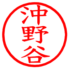 [朱肉の色]を選び、入力窓に“沖野谷”と入力して[生成]ボタンを押すと、印影が更新され、リンクから電子印鑑(デジタル印影)がダウンロードできます。 電子印鑑「沖野谷」の作り方文字表示が変なときや、文字バランスが悪いときは[字形切替]のチェックボックスでON/OFFを切り替え[生成]しなおしてください。 生成される画像は通常の印影「沖野谷.png」と、にじみを表現した少し太めの印影「沖野谷B.png」の背面透過PNG形式2種と、鮮明なPDF形式の印影「沖野谷.pdf」の計3種類です。 朱肉の微妙な色の違いを7色で表現しました。デフォルト(左端)は、JISが定めた朱肉の色のマンセル値(7.5R 5/14)をRGB値(217,66,54)に変換したものになっています。 「電子透かし」にチェックを入れて[生成]ボタンを押すと、タイムスタンプを電子透かしとして埋め込んだセキュアな電子印鑑が作れます。詳細は別ページの「タイムスタンプと電子透かし」でご覧ください。 沖野谷さんの日付印が作れます。「日付スタンプメーカー」は、社内向けの書類に利用されることの多い日付印(データ印)が無料で作れるWebアプリケーションです。中段に日付が入り、上段と下段は、ともに8文字まで文字が入ります。 ![]() 古代文字で落款印が作れます。「落款スタンプメーカー」で作品を引き立たせる落款印が作れます。