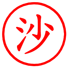 [朱肉の色]を選び、入力窓に“沙”と入力して[生成]ボタンを押すと、印影が更新され、リンクから電子印鑑(デジタル印影)がダウンロードできます。 電子印鑑「沙」の作り方文字表示が変なときや、文字バランスが悪いときは[字形切替]のチェックボックスでON/OFFを切り替え[生成]しなおしてください。 生成される画像は通常の印影「沙.png」と、にじみを表現した少し太めの印影「沙B.png」の背面透過PNG形式2種と、鮮明なPDF形式の印影「沙.pdf」の計3種類です。 朱肉の微妙な色の違いを7色で表現しました。デフォルト(左端)は、JISが定めた朱肉の色のマンセル値(7.5R 5/14)をRGB値(217,66,54)に変換したものになっています。 「電子透かし」にチェックを入れて[生成]ボタンを押すと、タイムスタンプを電子透かしとして埋め込んだセキュアな電子印鑑が作れます。詳細は別ページの「タイムスタンプと電子透かし」でご覧ください。 沙さんの日付印が作れます。「日付スタンプメーカー」は、社内向けの書類に利用されることの多い日付印(データ印)が無料で作れるWebアプリケーションです。中段に日付が入り、上段と下段は、ともに8文字まで文字が入ります。 ![]() 古代文字で落款印が作れます。「落款スタンプメーカー」で作品を引き立たせる落款印が作れます。