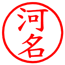 [朱肉の色]を選び、入力窓に“河名”と入力して[生成]ボタンを押すと、印影が更新され、リンクから電子印鑑(デジタル印影)がダウンロードできます。 電子印鑑「河名」の作り方文字表示が変なときや、文字バランスが悪いときは[字形切替]のチェックボックスでON/OFFを切り替え[生成]しなおしてください。 生成される画像は通常の印影「河名.png」と、にじみを表現した少し太めの印影「河名B.png」の背面透過PNG形式2種と、鮮明なPDF形式の印影「河名.pdf」の計3種類です。 朱肉の微妙な色の違いを7色で表現しました。デフォルト(左端)は、JISが定めた朱肉の色のマンセル値(7.5R 5/14)をRGB値(217,66,54)に変換したものになっています。 「電子透かし」にチェックを入れて[生成]ボタンを押すと、タイムスタンプを電子透かしとして埋め込んだセキュアな電子印鑑が作れます。詳細は別ページの「タイムスタンプと電子透かし」でご覧ください。 河名さんの日付印が作れます。「日付スタンプメーカー」は、社内向けの書類に利用されることの多い日付印(データ印)が無料で作れるWebアプリケーションです。中段に日付が入り、上段と下段は、ともに8文字まで文字が入ります。 ![]() 古代文字で落款印が作れます。「落款スタンプメーカー」で作品を引き立たせる落款印が作れます。