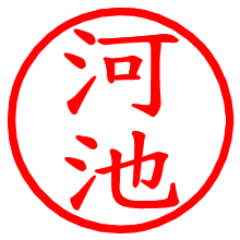 [朱肉の色]を選び、入力窓に“河池”と入力して[生成]ボタンを押すと、印影が更新され、リンクから電子印鑑(デジタル印影)がダウンロードできます。 電子印鑑「河池」の作り方文字表示が変なときや、文字バランスが悪いときは[字形切替]のチェックボックスでON/OFFを切り替え[生成]しなおしてください。 生成される画像は通常の印影「河池.png」と、にじみを表現した少し太めの印影「河池B.png」の背面透過PNG形式2種と、鮮明なPDF形式の印影「河池.pdf」の計3種類です。 朱肉の微妙な色の違いを7色で表現しました。デフォルト(左端)は、JISが定めた朱肉の色のマンセル値(7.5R 5/14)をRGB値(217,66,54)に変換したものになっています。 「電子透かし」にチェックを入れて[生成]ボタンを押すと、タイムスタンプを電子透かしとして埋め込んだセキュアな電子印鑑が作れます。詳細は別ページの「タイムスタンプと電子透かし」でご覧ください。 河池さんの日付印が作れます。「日付スタンプメーカー」は、社内向けの書類に利用されることの多い日付印(データ印)が無料で作れるWebアプリケーションです。中段に日付が入り、上段と下段は、ともに8文字まで文字が入ります。 ![]() 古代文字で落款印が作れます。「落款スタンプメーカー」で作品を引き立たせる落款印が作れます。